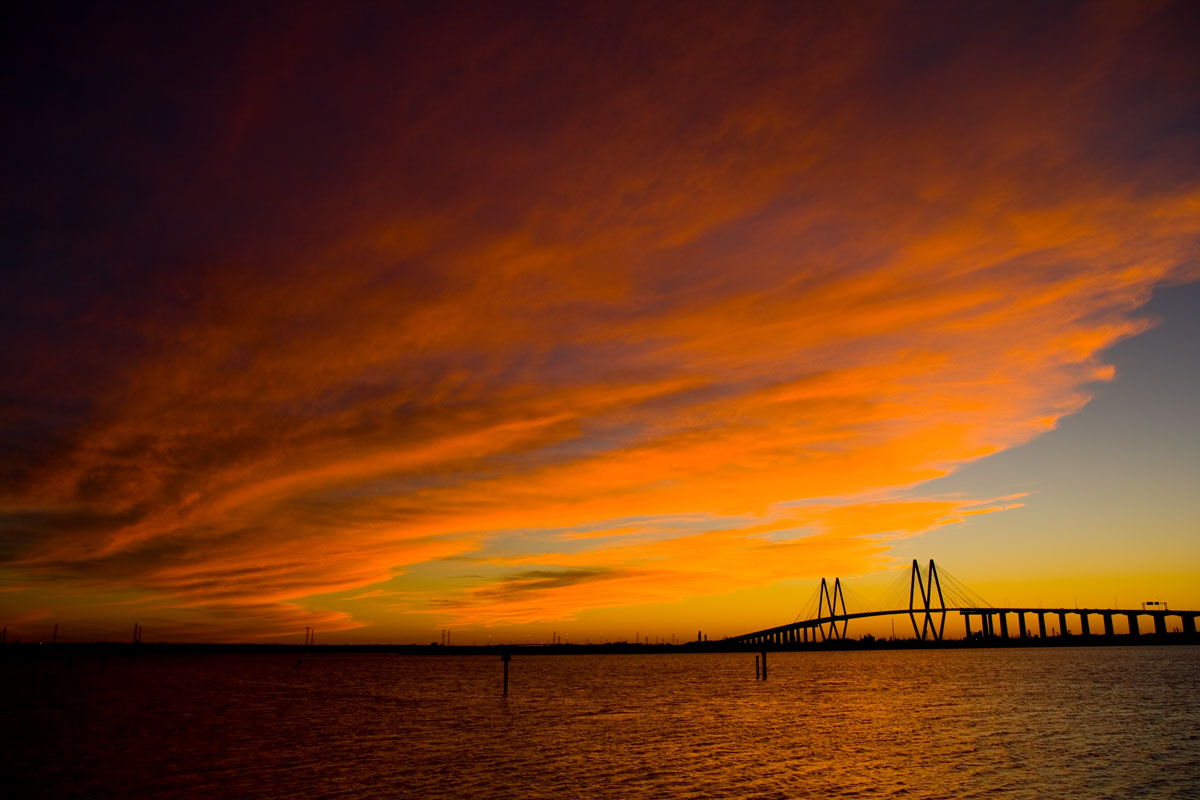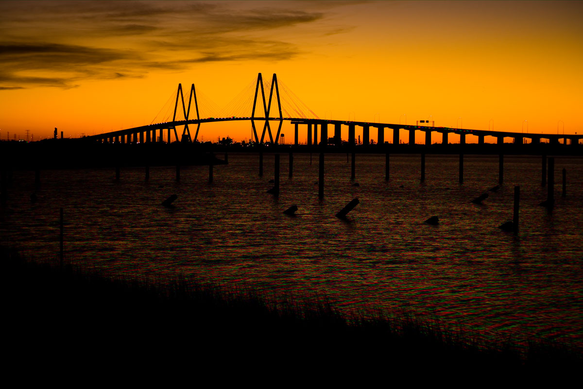 My visit with my sister here near the city of Houston, TX has mostly consisted of visiting until late today. I was taken to see the San Jacinto Monument. While checking out the park, I noticed the Fred Hartman bridge. It’s the longest suspension bridge in Texas and made a great frame for the sunset. It should be very interesting getting acquainted with this area.